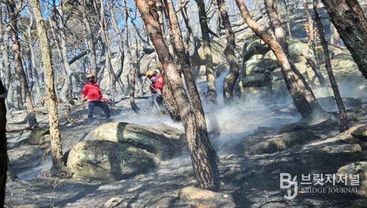 브릿지저널 김경미 기자 | 남부지방산림청은 25일 낮 12시39분쯤 경북 구미시 구평동 일원에서 발생한 산불을 선제적이고 집중적인 대응으로 2시간41분 만에 주불 진화했다고 밝혔다.