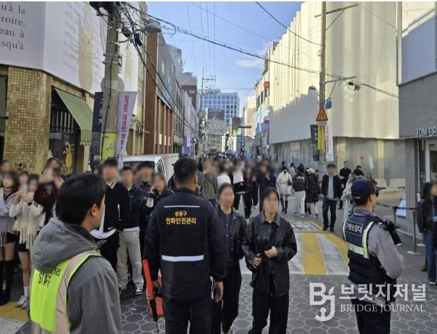 브릿지저널 김경미 기자 | 서울 성수동은 주말이면 발 디딜 틈이 없을 만큼 인파가 몰리는 대표적인 핫플레이스다. 외국인 관광객과 팝업스토어 방문객이 급증하면서 혼잡도는 갈수록 높아지고 있지만, 연무장길 일대에서는 최근 1년간 다중운집 인파로 인한 인명사고가 단 한 건도 발생하지 않았다. 인파 밀집이 상시화된 상황에서도 사고가 발생하지 않은 배경으로 성동구가 구축한 사전 감시와 현장 대응 중심의 인파 관리 체계가 꼽힌다.