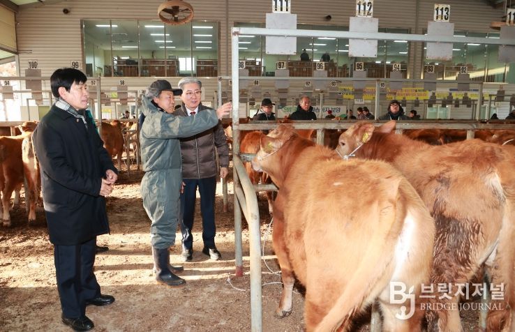 브릿지저널 김경미 기자 | 의령군은 지난 26일 이른 아침 의령축협이 운영하는 가축시장을 방문해 한우 거래가격 동향과 송아지 경매 상황을 점검하고, 한우 사육 농가의 애로사항을 청취했다.