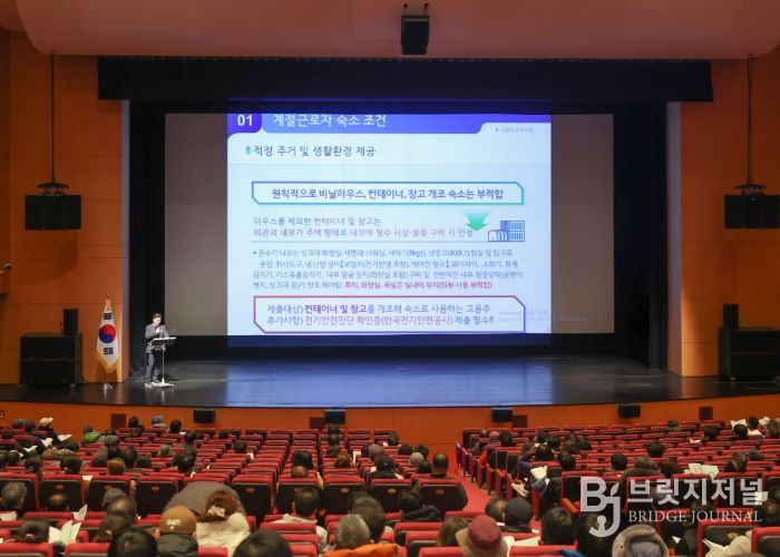 브릿지저널 정보영 기자 | 성주군은 1월 27일 문화예술회관 대공연장에서 농촌 인력난 해소와 안정적인 계절근로자 프로그램 운영을 위해 『`26년 상반기 외국인 계절근로자 고용주 사전교육』을 실시했으며. 이 날 교육장에는 계절근로자 고용주를 포함한 배우자 등 1,200여명이 참석했다.