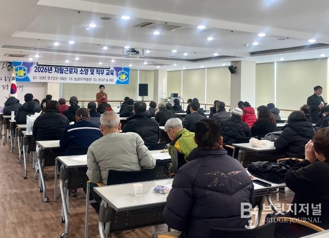 브릿지저널 정보영 기자 | 충남금산지역자활센터는 지난 27일 금산읍 청산회관 5층 교육실에서 자활근로사업 참여자 및 센터 종사자 등 70명이 참석한 가운데 2026년도 자활근로사업 참여자 직무교육에 나섰다.