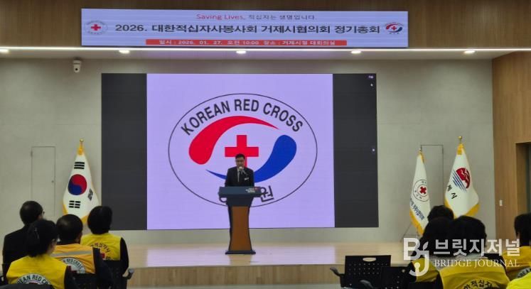 브릿지저널 김경미 기자 | 대한적십자사봉사회 거제시협의회는 27일 거제시청 대회의실에서 민기식 거제시 부시장, 신금자 거제시의회 의장, 적십자사 경남지사 및 봉사회원 등 100여명이 참석한 가운데 2026년 정기총회를 개최했다.