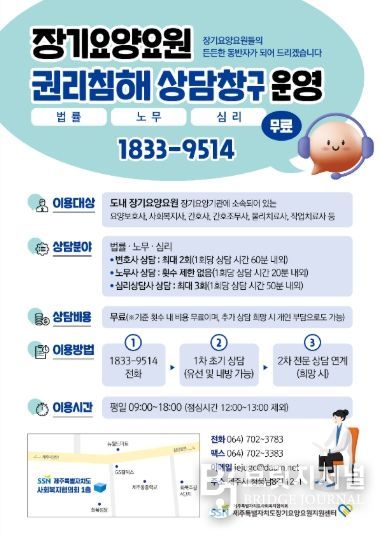 브릿지저널 정보영 기자 | 제주특별자치도가 도 단위 최초로 요양보호사 등 장기요양기관 종사자를 위한 전용 상담전화 ‘시시콜콜’을 개설해 1월부터 운영하고 있다.