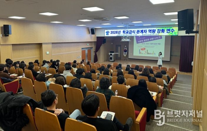 브릿지저널 김경미 기자 | 충청북도영동교육지원청은 28일 영동교육지원청 학교지원센터 3층 시청각실에서 관내 유·초·중·고등학교 조리사, 조리실무사 70여 명을 대상으로 ‘2026년 학교급식 관계자 역량강화 연수’를 시행했다.
