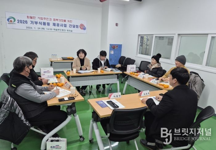 브릿지저널 정보영 기자 | 천안시는 29일 따숨푸드뱅크에서 ‘2026년 기부식품 등 제공사업 협력 강화를 위한 간담회’를 개최했다.