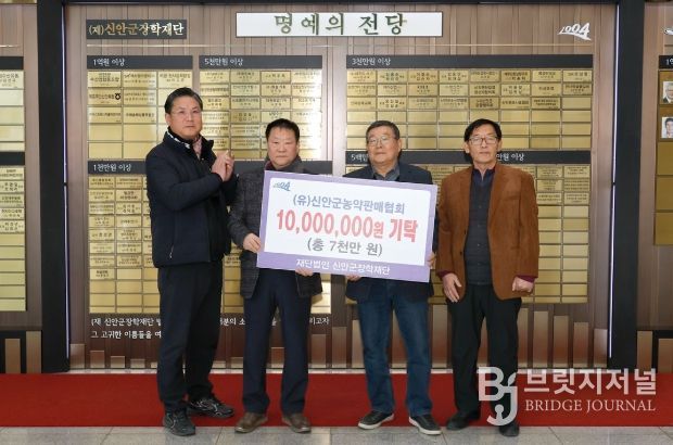 브릿지저널 김경미 기자 | (유)신안군농약판매협회(회장 김문창)는 1월 29일 신안군청 영상회의실에서 (재)신안군장학재단에 장학기금 1천만 원을 기탁했다. 이번 기탁으로 협회는 2019년 첫 기탁을 시작으로 7년 동안 총 7천만 원의 장학기금을 기탁하며 지역인재 육성을 위한 지속적인 기탁을 이어가고 있다.