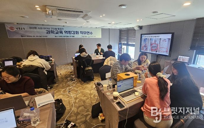 브릿지저널 정보영 기자 | 경북교육청은 30일 구미시에 있는 라마다 바이 윈덤 구미 호텔에서 도내 초․중등 교사 30여 명을 대상으로, 생성형 AI와 바이브 코딩을 활용한 과학교육 활성화를 위한 ‘과학교육 역량 강화 직무연수’를 개최했다고 밝혔다.