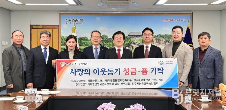 브릿지저널 김경미 기자 | 진주시복지재단(이사장 이성갑)은 30일 진주시청 기업인의 방에서 지역사회 기업·기관·단체의 어려운 이웃돕기 성금품 기탁식을 가졌다.