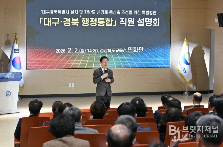 브릿지저널 정보영 기자 | 경북교육청은 지난 1월 28일 경상북도의회의 행정통합 합의안 가결 직후, 2일 본청 및 직속기관, 교육지원청의 핵심 간부를 대상으로 행정통합 관련 경과와 주요 쟁점에 대한 직원 설명회를 개최했다.