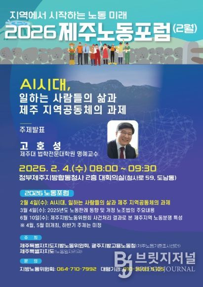제주특별자치도 지방노동위원회(위원장 금정수)는 오는 4일 오전 8시 정부제주지방합동청사에서 ‘2026 제주노동포럼’ 첫 회의를 개최한다.