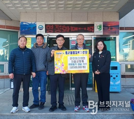 브릿지저널 김경미 기자 | 삼천포연안어선 자율관리어업공동체(위원장 정군식)는 지난 2일 동서동행정복지센터를 방문해 관내 어려운 이웃을 위해 써달라며 성금 50만원을 기탁했다.
