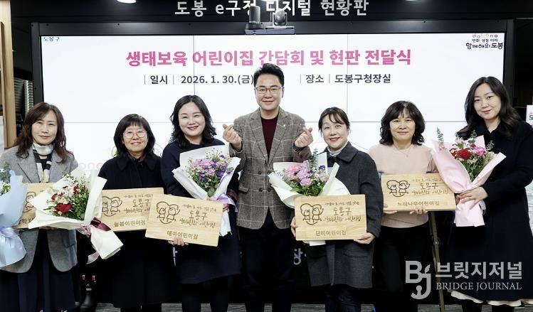 브릿지저널 김경미 기자 | 서울 도봉구가 지난 1월 30일 지역 5개 어린이집에 생태보육 현판을 전달했다.
