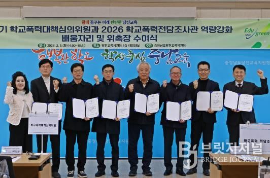 브릿지저널 정보영 기자 | 당진교육지원청은 2월 3일 제4기 학교폭력심의위원회와 2026학년도 학교폭력 전담조사관 위촉식을 열고, 역량 강화를 위한 배움자리를 함께 진행했다.