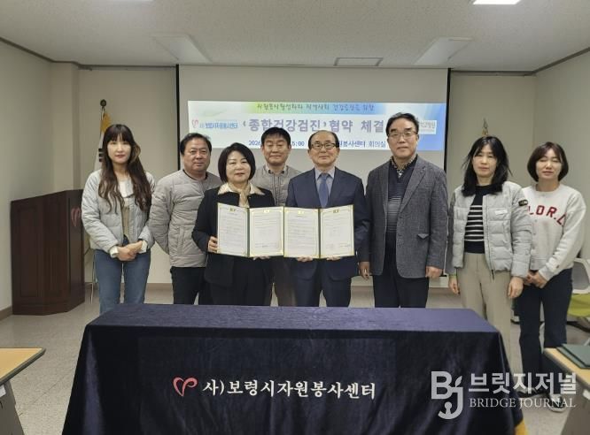브릿지저널 정보영 기자 | 보령시자원봉사센터는 3일 우수자원봉사자들의 건강관리를 위해 자원봉사센터 회의실에서 건양대학교병원과 ‘종합건강검진 협약’을 체결했다.
