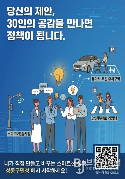 브릿지저널 김경미 기자 | 서울 성동구가 주민이 직접 일상 속 문제를 제안하고 해결하는 온라인 플랫폼 '성동구민청'을 통해 주민 맞춤형 생활밀착 정책을 잇달아 발굴하고 있다.