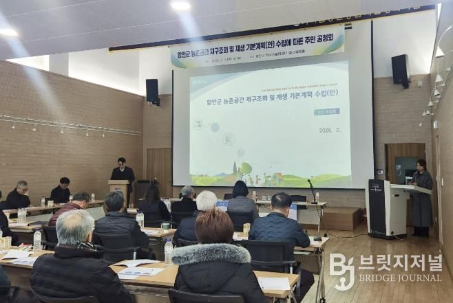 브릿지저널 김경미 기자 | 함안군은 지난 3일 가야읍 어울림센터 1층 어울림홀에서 농촌공간의 체계적인 발전과 지속 가능한 농촌 조성을 위한 ‘농촌공간 재구조화 및 재생 기본계획(안)’ 주민공청회를 열고 주민 의견 수렴에 나섰다고 밝혔다.
