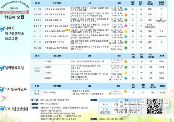 브릿지저널 김경미 기자 | 인천광역시교육청신트리도서관은 지역 주민의 생애주기별 학습 기회 제공을 위해 2026년 상반기 평생학습프로그램 학습자를 모집한다.