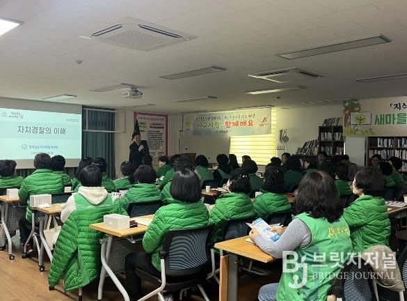 브릿지저널 정보영 기자 | 충청남도자치경찰위원회는 4일 서산시 새마을회관에서 새마을부녀회 회원 45명을 대상으로 ‘찾아가는 자치경찰 교육·홍보’ 활동을 펼쳤다.