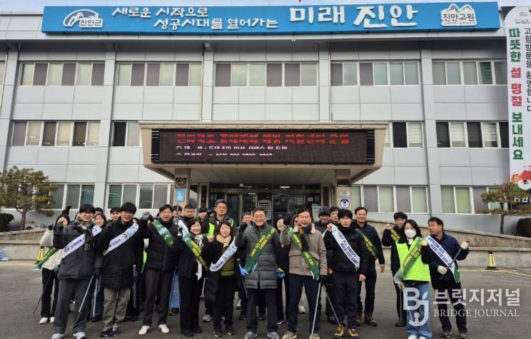 브릿지저널 윤나영 기자 | 진안군은 설 명절을 앞두고 4일, 군청 환경과와 진안읍 행정복지센터 직원 60여 명이 참여한 가운데 진안읍 시가지 일원에서 환경정화활동과 생활쓰레기 저녁시간 배출 캠페인을 추진했다.