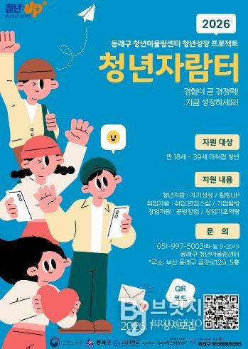 브릿지저널 윤나영 기자 | 부산 동래구는 미취업 청년들의 진로 탐색과 취·창업 역량 강화를 지원하기 위해 ‘2026년 청년성장프로젝트 : 청년자람터 1기’ 참여자를 모집한다고 밝혔다.