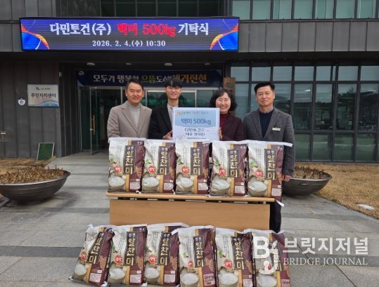 브릿지저널 김경미 기자 | 다민토건(주)(대표 정의민)이 설 명절을 맞아 4일 문백면 행정복지센터를 찾아 소외계층을 위한 백미 500kg을 기탁했다.