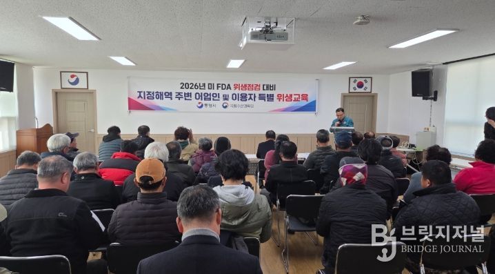 브릿지저널 김경미 기자 | 통영시는 오는 3월 23일부터 4월 3일까지 예정된 미국 FDA 지정해역 위생점검을 대비해 패류 위생관리 실태 점검에 선제적으로 대응하고, 통영 수산물의 안전성을 국제적으로 인정받아 대미 수출에 차질이 없도록 하기 위해 ‘어업인 특별 위생교육’을 지난 4일 실시했다.
