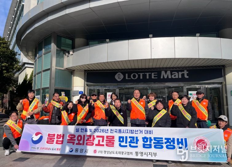 브릿지저널 김경미 기자 | 통영시는 설 연휴를 맞아 고향을 찾는 귀성객과 관광객들에게 쾌적하고 안전한 거리 환경을 제공하기 위해 지난 4일 경상남도 옥외광고협회 통영시지부와 함께 불법 옥외광고물 일제 정비 활동과 근절 캠페인을 실시했다.