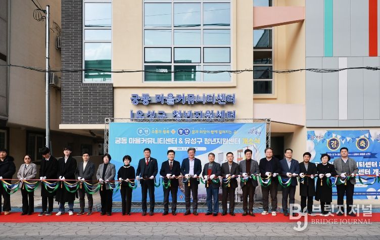 브릿지저널 정보영 기자 | 대전 유성구는 지역 주민 소통 활성화와 청년 활동 지원을 위한 ‘궁동 마을커뮤니티센터&유성구 청년지원센터’를 조성하고 5일 개소식을 개최했다.