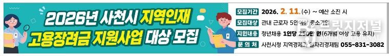 브릿지저널 김경미 기자 | 사천시는 청년 취업난과 중소기업체의 인력난 해소를 위해 2026년 사천시 지역인재 고용장려금 지원사업 참여기업을 모집한다고 6일 밝혔다.