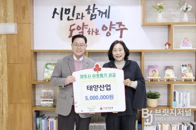 브릿지저널 김경미 기자 | 양주시가 지난 5일 태양산업으로부터 이웃돕기 성금 500만 원을 기탁받았다.