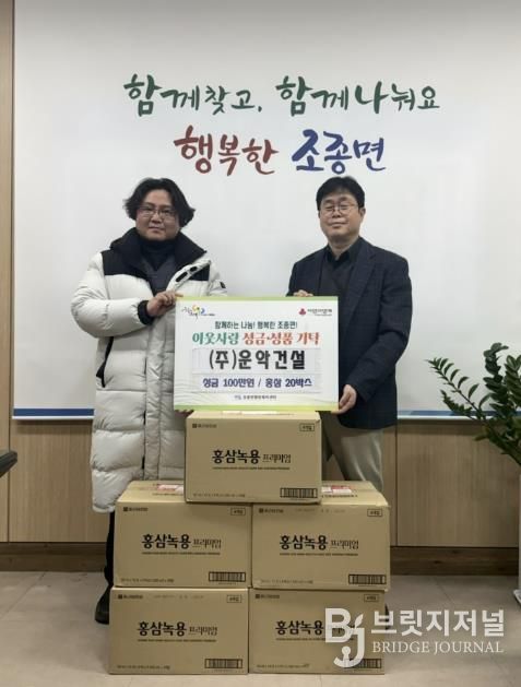 브릿지저널 김경미 기자 | 가평군 소재 운악건설은 설 명절을 앞두고 최근 조종면 행정복지센터를 방문해 성금 100만 원과 홍삼 20박스를 기탁하며 이웃사랑을 실천했다.