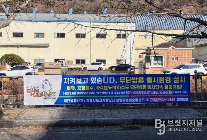 브릿지저널 김경미 기자 | 김해시도시개발공사 생림맑은물순환센터는 폐수 무단방류로 인한 수처리 시설 운영 차질을 예방하고, 사업장들의 환경 인식을 높이기 위해 지난 4일 폐수 무단방류 방지 현수막 설치를 완료했다고 밝혔다.