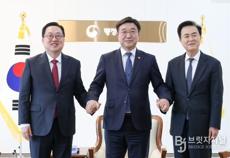 브릿지저널 정보영 기자 | 이장우 대전시장은 6일 오후 4시 정부세종청사에서 윤호중 행안부 장관, 김태흠 충남지사와 간담회를 갖고, 대전․충남 행정통합 특별법의 원안 관철을 정부에 촉구하며 관련 건의문을 공식 전달했다.
