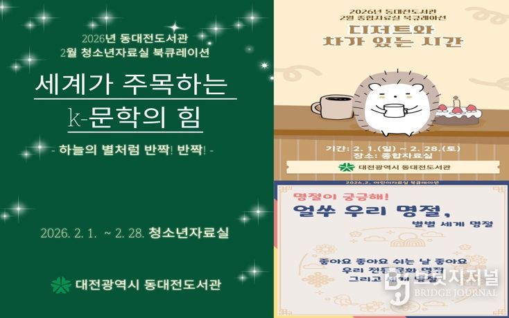 브릿지저널 정보영 기자 | 동대전도서관은 2월 한 달간 도서관 각 자료실에서 주제별 북큐레이션(Book Curation)을 운영한다.