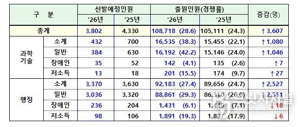인사혁신처(처장 최동석)는 지난 2~6일 9급 공채 선발시험 응시원서를 접수한 결과 선발 예정 인원 3,802명에 10만 8,718명이 지원해 평균 28.6대 1의 경쟁률을 보였다고 7일 밝혔다.