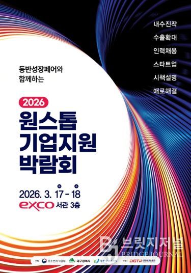 브릿지저널 김진석 기자 | 대구광역시는 지역기업의 지속 가능한 성장을 지원하기 위해 오는 3월 17일부터 18일까지 EXCO 서관 3층에서 열리는 ‘동반성장페어와 함께하는 2026 원스톱 기업지원박람회’ 참가기업을 모집한다.