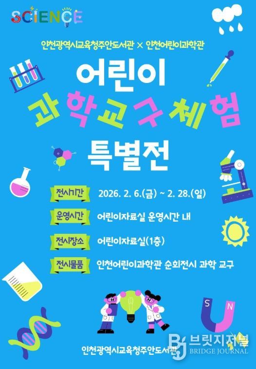 브릿지저널 김경미 기자 | 인천광역시교육청주안도서관은 오는 28일까지 어린이자료실에서 ‘어린이 과학교구 체험 특별전’을 운영한다.