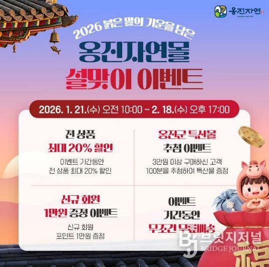 브릿지저널 김경미 기자 | 옹진군은 지난 9일, 민족 대명절 설을 앞두고 진행 중인 온라인 쇼핑몰 ‘옹진자연몰’의 설 맞이 할인행사에 소비자들의 뜨거운 반응이 이어지며, 주문이 쇄도하고 있다고 밝혔다.