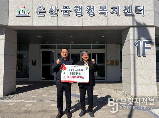 브릿지저널 윤나영 기자 | ㈜씨엠원이 설명절을 앞두고 9일 울주군 온산읍 행정복지센터를 방문해 지역 취약계층을 위한 성금 300만원을 기부했다.