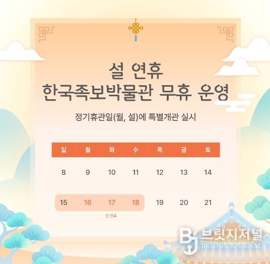 브릿지저널 정보영 기자 | 대전 중구 한국족보박물관에서는 2026년 설 연휴 기간인 오는 14일부터 18일까지 5일간 휴관 없이 정상 운영한다고 밝혔다.