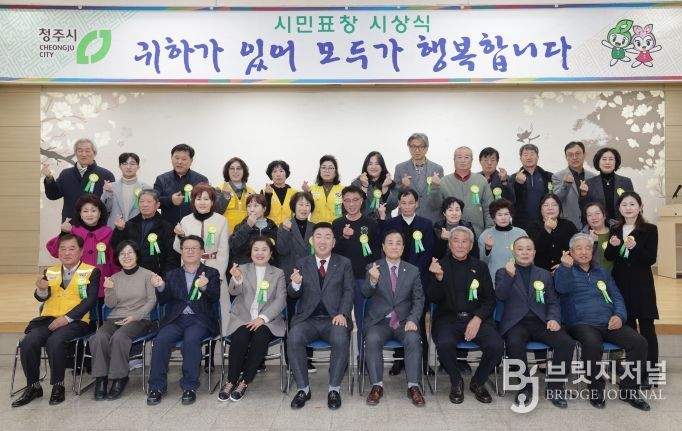 브릿지저널 김경미 기자 | 청주시는 9일 서원구청에서 시민표창 시상식을 열고, 지역발전과 이웃을 위해 헌신해 온 시정발전 유공 시민에게 표창을 수여했다.