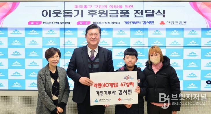 브릿지저널 김경미 기자 | 인천 미추홀구는 지난 9일 명절을 앞두고 지역사회를 따뜻하게 만드는 이웃돕기 후원 물품 전달식이 잇따라 열렸다.