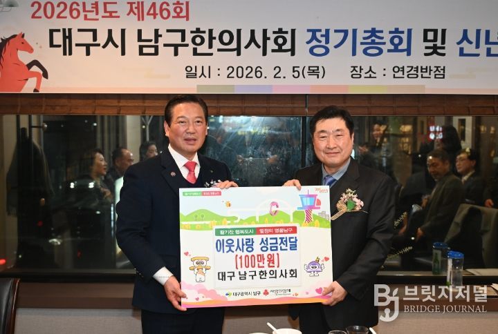 브릿지저널 김진석 기자 | 대구 남구는 지난 5일 대구 남구 한의사회(회장 이재환)에서 새해를 맞아 이웃 돕기 성금 100만원을 기탁했다고 밝혔다.