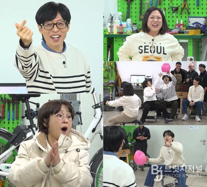 이날 유재석, 송은이, 김숙, 유연석이 역대급 지옥훈련(?)에 입성한다고 해 궁금증을 증폭시킨다. 네 사람은 바퀴 의자에 앉아 풍선을 옮기는 ‘풍선 릴레이’에 도전하는데 송은이가 연습이 시작되기 무섭게 엉덩방아부터 찧어 유재석을 빵 터지게 한다. 하지만 이는 시작에 불과하다고. 네 사람은 몸을 180도 뒤로 젖히는 건 기본, 말 그대로 온몸을 내던지며 풍선 주고받기에 몰두해 현장 열기를 뜨겁게 달군다. 유재석은 서커스를 방불케 하는 혼신의 퍼포먼스에 “우리 무슨 기예단이야?”라고 내뱉어 폭소를 유발한다.