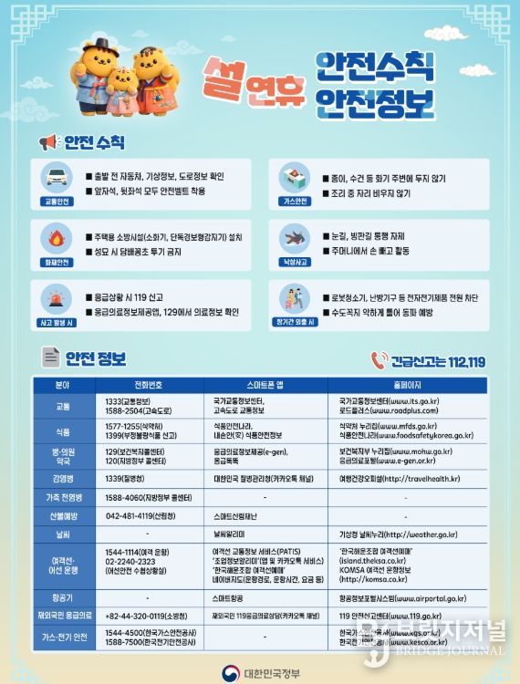 브릿지저널 김경미 기자 | 행정안전부는 국민께서 안전하고 즐거운 설 명절을 보낼 수 있도록 중앙 및 지방정부 합동으로 ‘설 연휴 안전관리 대책’을 추진한다.