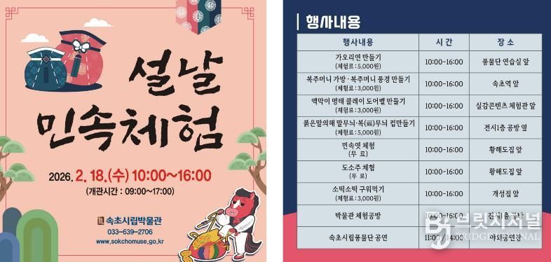 브릿지저널 윤나영 기자 | 속초시립박물관이 설날을 맞아 2월 18일 시민과 관광객을 대상으로 설맞이 전통문화 민속체험행사를 운영한다.