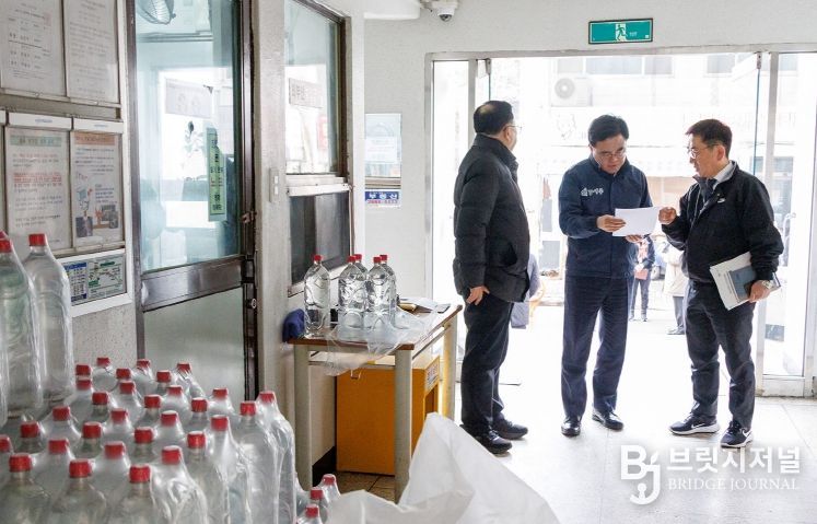 브릿지저널 김경미 기자 | 진교훈 서울 강서구청장이 11일 오후 단수로 불편을 겪고 있는 방화동의 한 아파트를 찾아 주민 피해 현황과 복구 진행 상황을 점검했다.