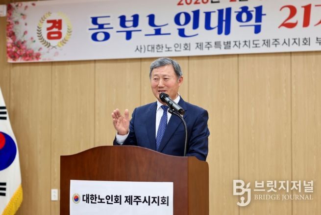 브릿지저널 정보영 기자 | 김완근 제주시장은 2월 11일 조천주민교류센터 회의실에서 열린 제21기 동부노인대학 졸업식에 참석해 축하 인사를 전했다.