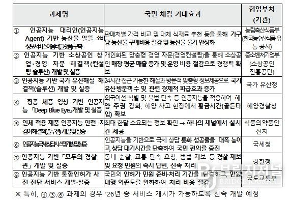 브릿지저널 김경미 기자 | 과학기술정보통신부는 '인공지능 민생 10대 과제(프로젝트)'를 본격 추진하기 위해, 과제(프로젝트) 중 8개 과제의 사업자 선정을 위한 공모를 2월 11일부터 개시한다고 밝혔다.