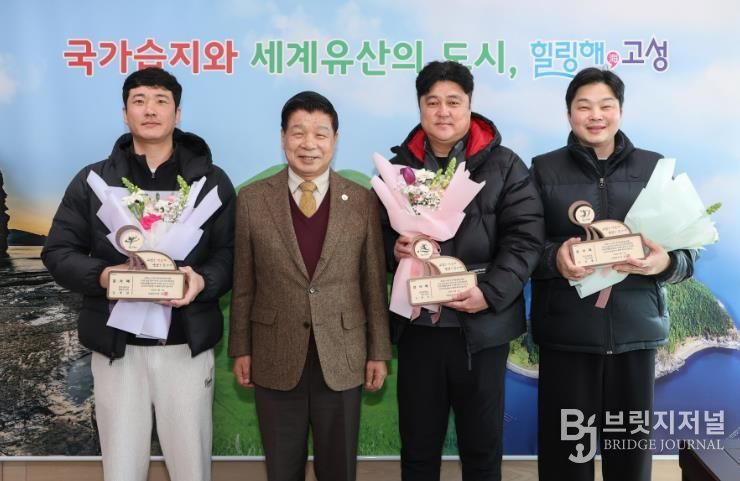 브릿지저널 김경미 기자 | 고성군은 2월 11일 오전 11시 군수실에서 동·하계 전지훈련에 지속적으로 참가하며 지역 스포츠산업 발전과 지역경제 활성화에 기여한 지도자들에게 감사패를 수여했다.